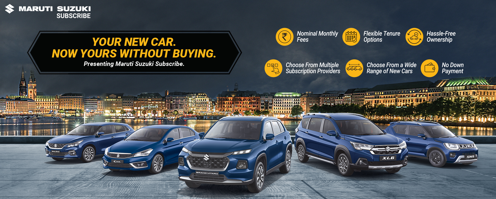 Maruti Suzuki Subscribe enables all customers to enjoy driving their preferred Maruti Suzuki cars without having to deal with all the financial responsibilities that come with owning a car.All you need to do is opt for a monthly subscription plan at a fixed monthly fee, which includes the routine maintenance and insurance costs, and choose a flexible tenure. At Hindustan Auto Agency in, City Centre, Bokaro, all Hatchback, Sedan, SUV, the MUV models line-up includes Baleno, Invicto, EVitara, Jimny, Ciaz, Ignis, Fronx, Grand Vitara, XL6. Here, you will enjoy Maruti Suzuki Subscribe benefits such as: